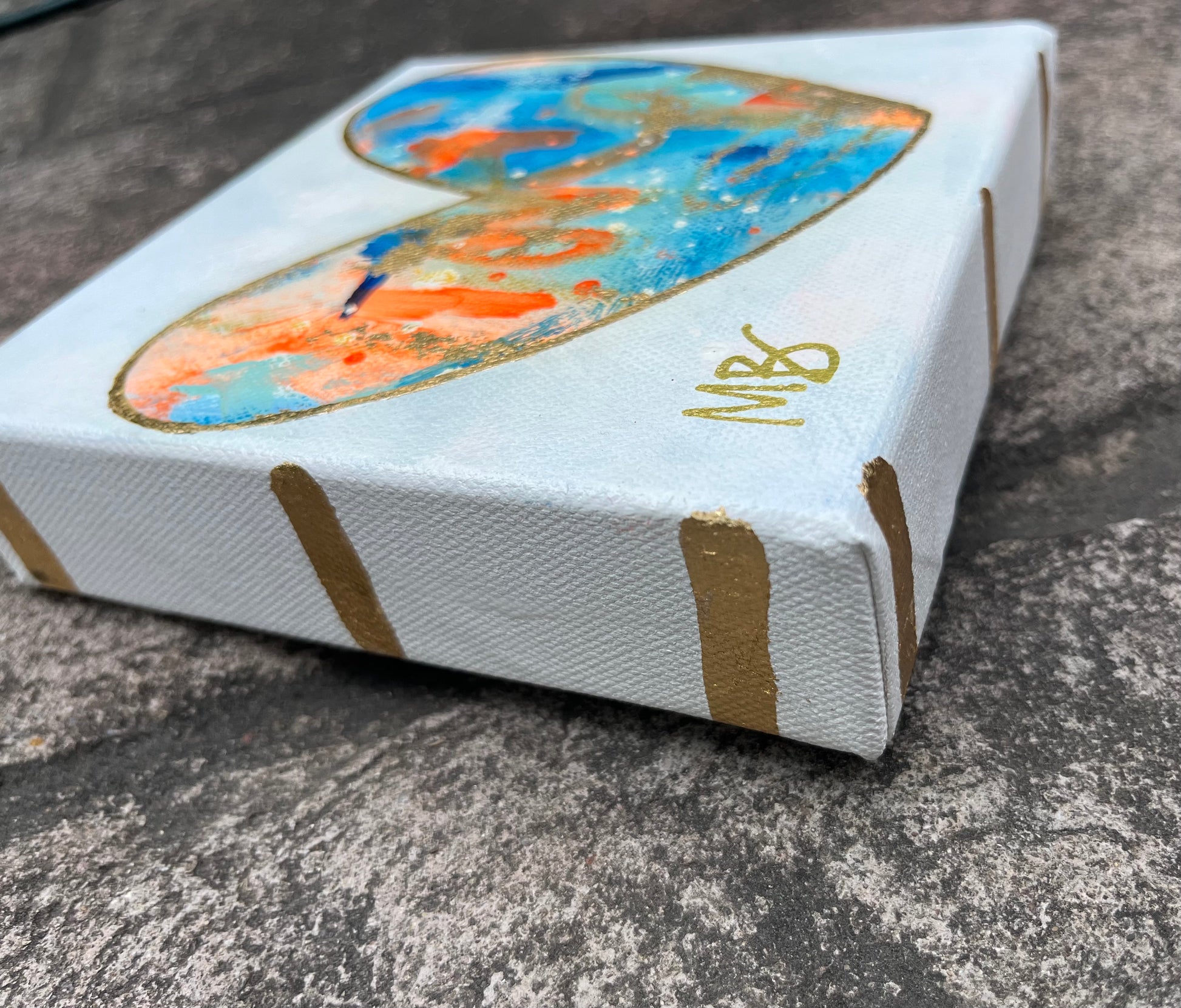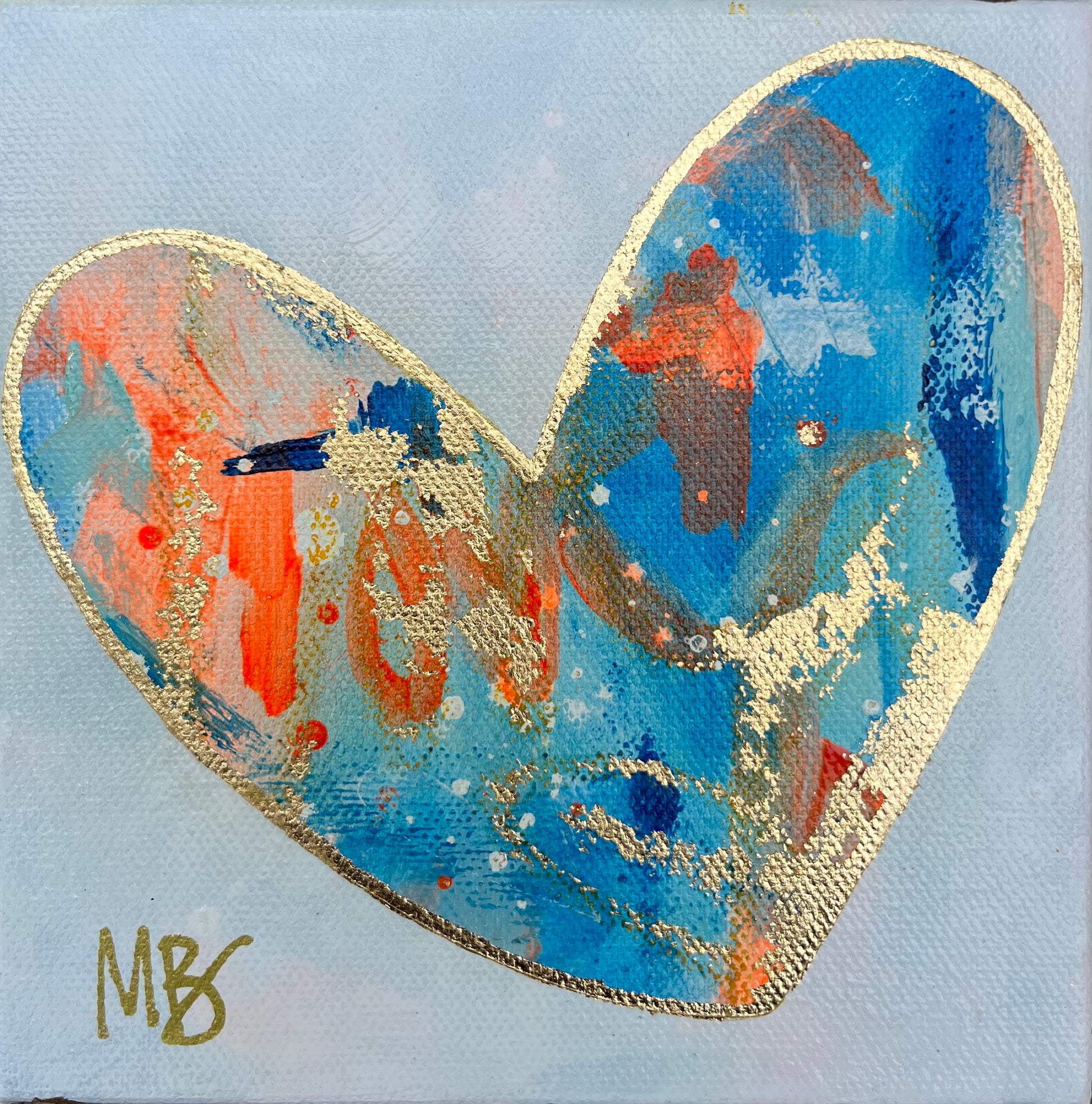 This mini heART painting measures 6”x6” and has been painted and varnished on a 1.5” thick stretched canvas. Each heart is lined with gold leaf, which also adorns each side of the artwork. The perfect size to collect or gift to someone special!
