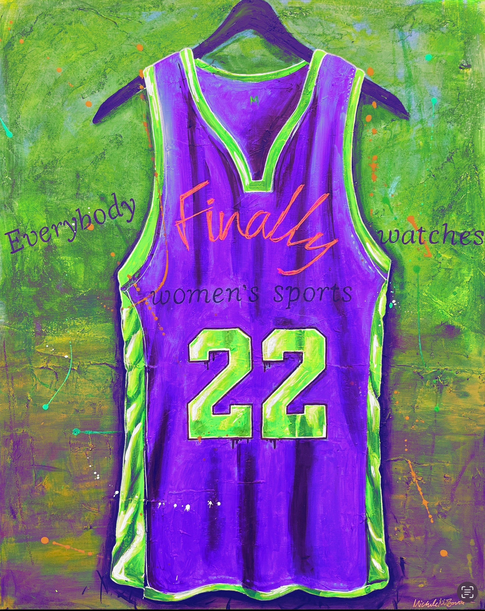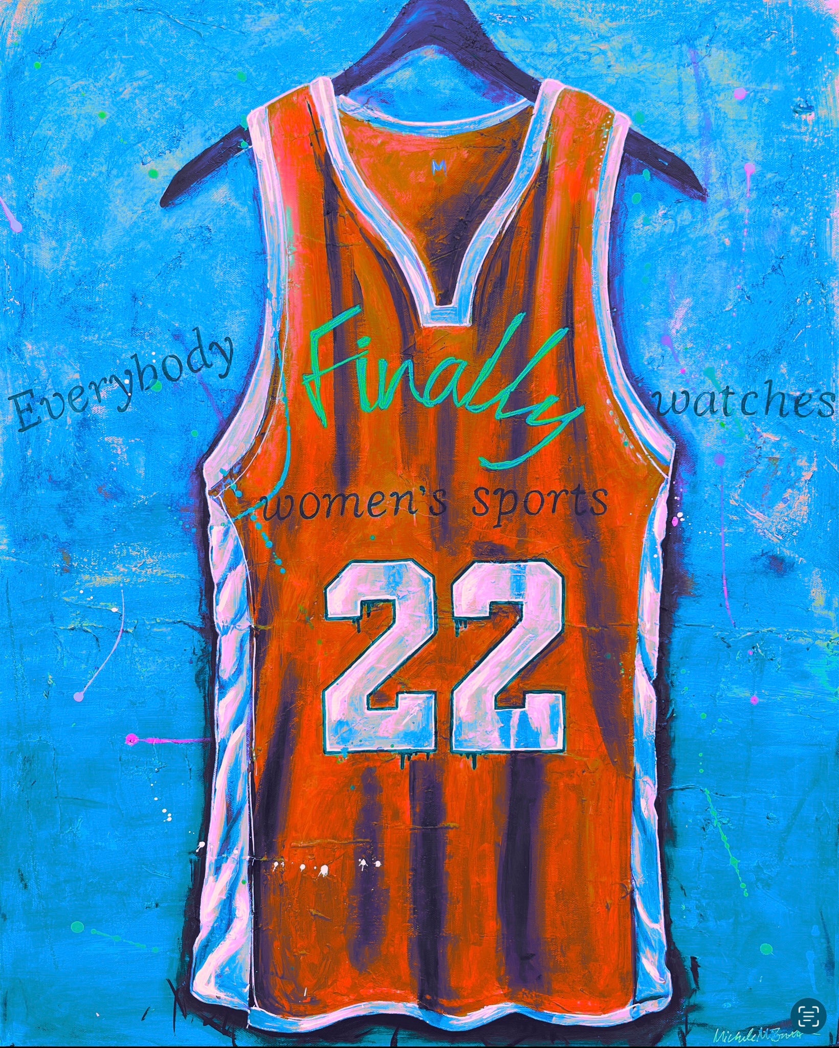 This original is called “Finally” and was inspired by the energy and excitement Caitlyn Clark brings to the game—she’s more than just a player; she’s a movement. Her incredible talent is not only elevating women’s basketball but also shining a light on women athletes everywhere. It’s a thrill to see so many more eyes on the game and the amazing women making history. Even as a former player, I never thought I’d pay over $100 to sit in the upper deck of a women’s college basketball game (Iowa vs LSU) but I’m so glad I did! Let’s keep pushing the limits and celebrating these unstoppable athletes! #22 #WomensSports #BasketballArt #WomenInSports #sportsartist