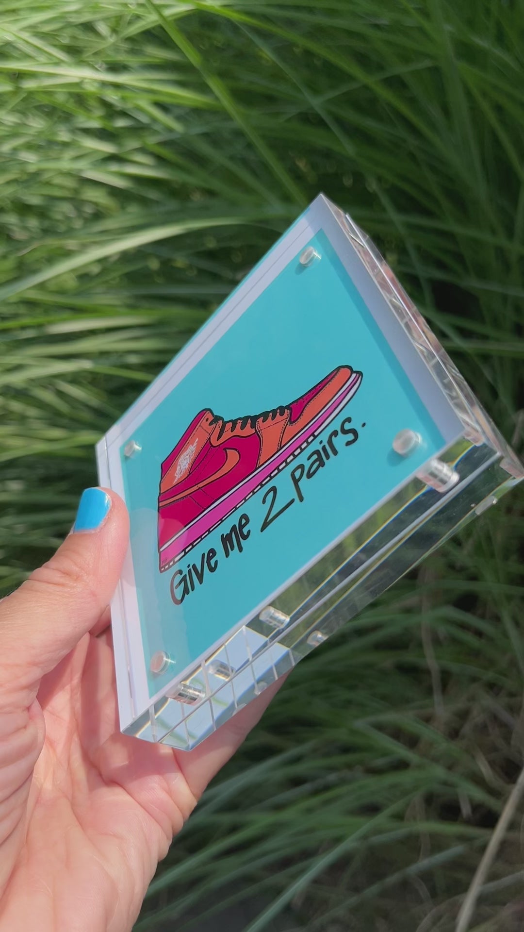You’re singing it right? 🎶”give me 2 pairs, I need 2 pairs…” Anyway, this adorable giclee print measures 4”x4” and includes the acrylic block frame. It’s the perfect size to sit on your desk or shelf and makes a great gift for the sneaker head in your life! Professionally printed on glossy fine art paper.