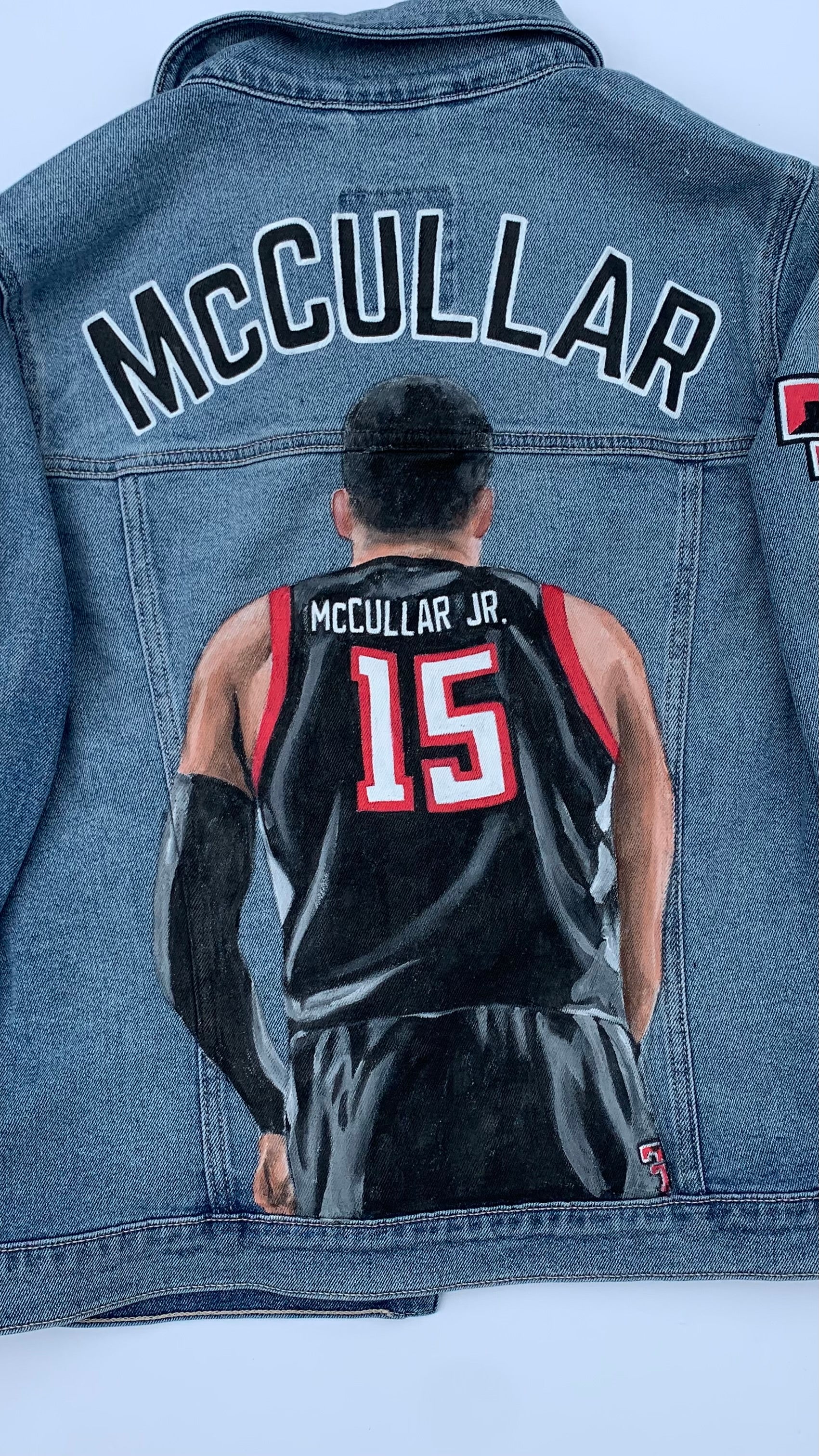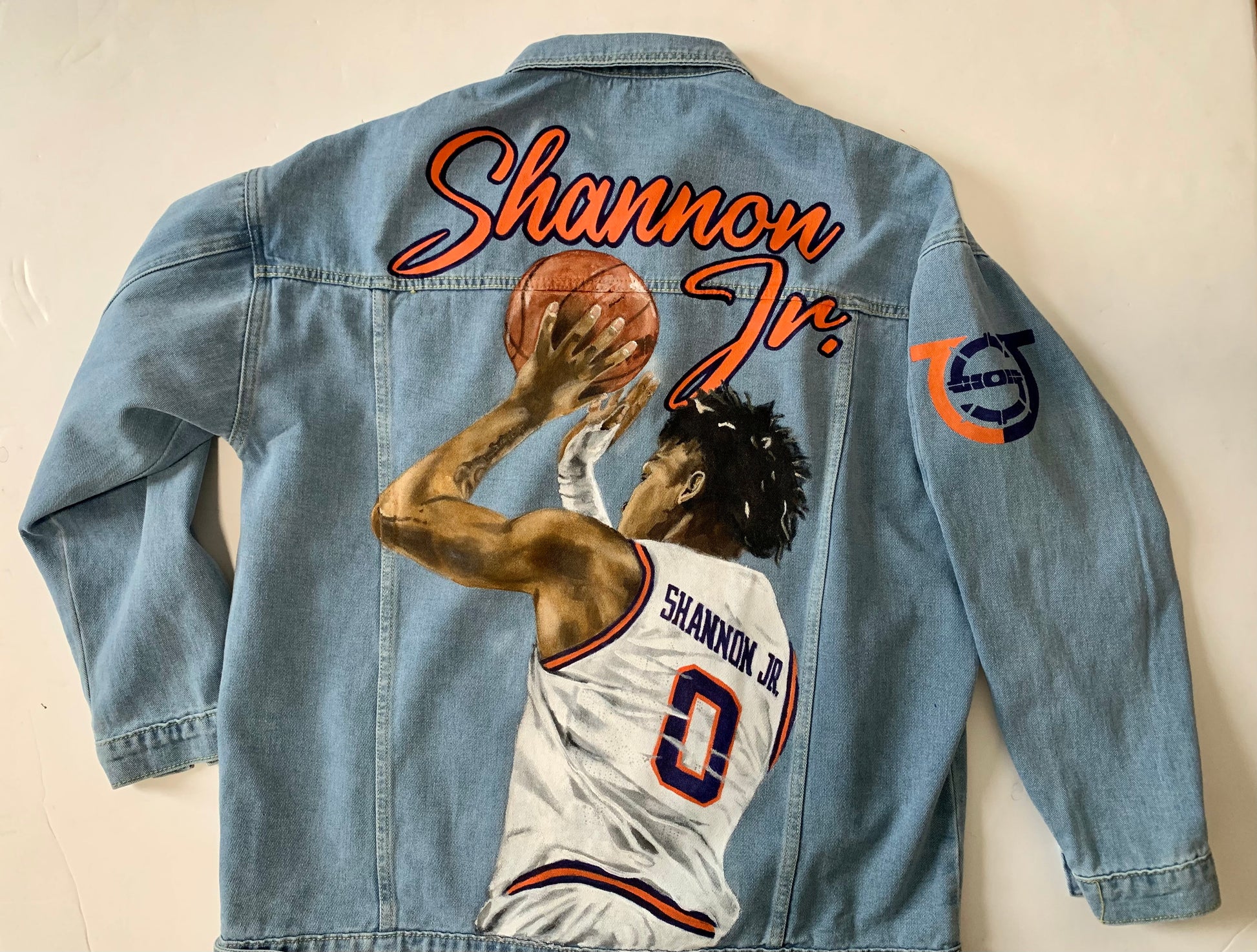 This non refundable fee reserves your spot for a custom sports or concert portrait jacket, which will be designed and created by Michele Benton. Pricing starts at: $350 for a B&W portrait type image on back... or $385 for a color portrait image on back. In addition to the large painted back, I will paint 2-3 additional smaller items (like a last name/number/city name).