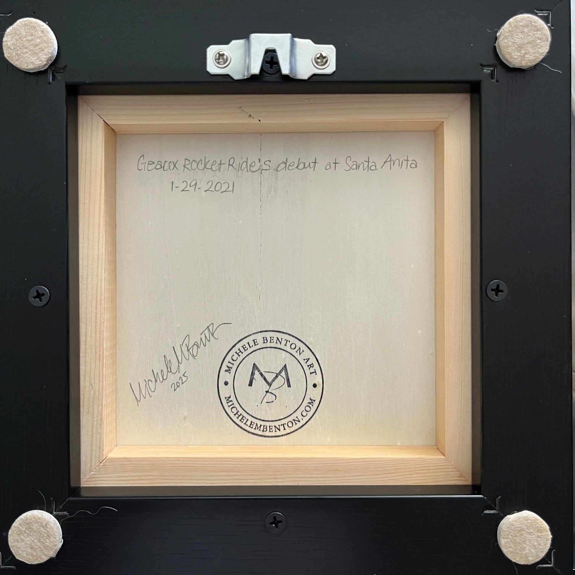 Paintings are created on a cradled wood panel with the option to add a black floater frame.
