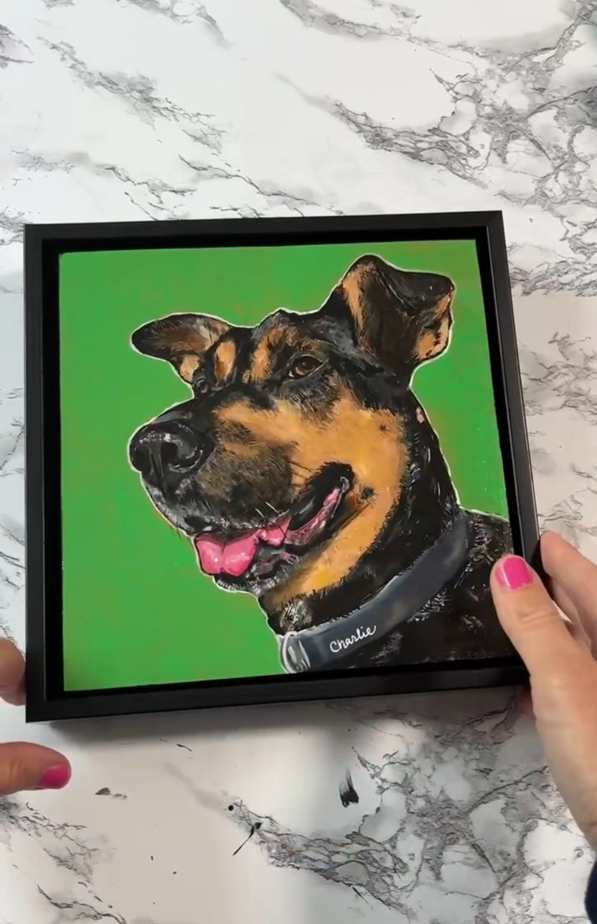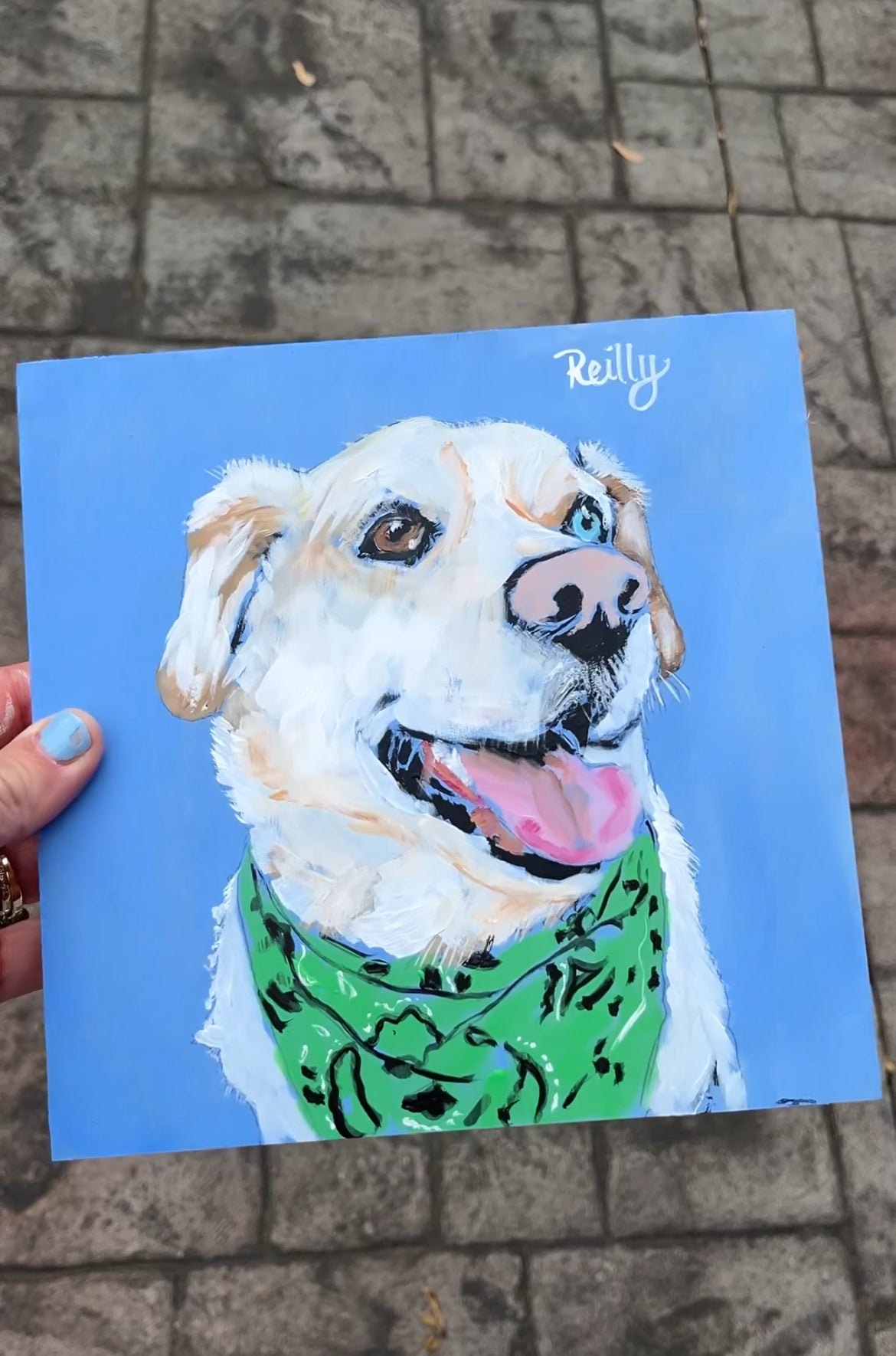 Immortalize your beloved dog with a custom portrait! Choose from 8x8 or 12x12 head-only options, with a plain background. Perfect as a gift or to honor the memory of a furry friend. Email for custom requests/other animals. Bring your dog to life with an original painting by Michele Benton.
